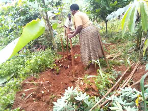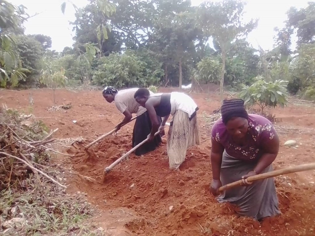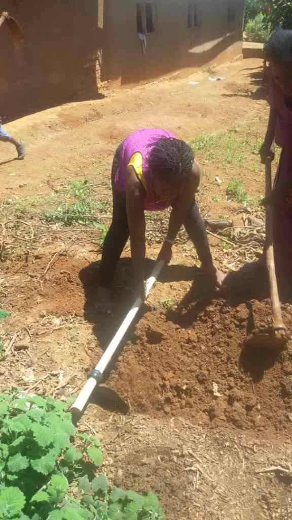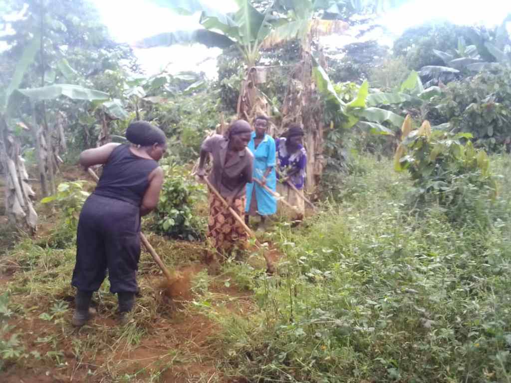Veel landbouwers in Oeganda bewerken het land met een hak, zo ook de leden van onze doelgroep.