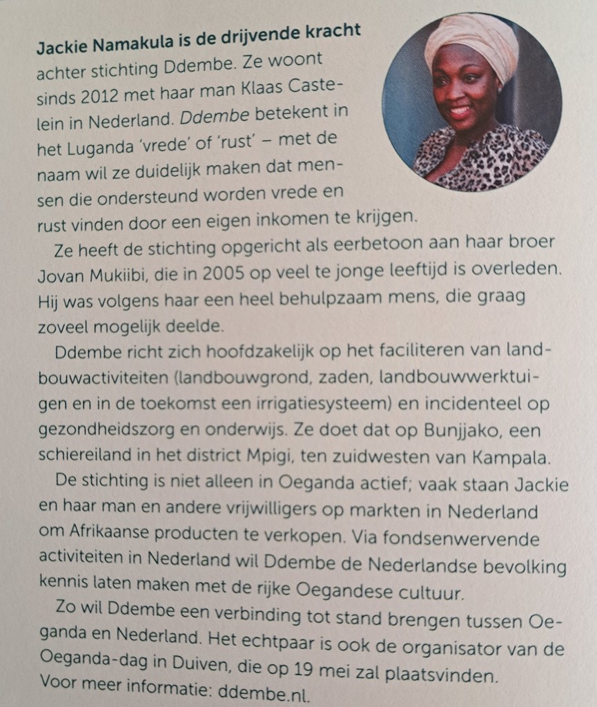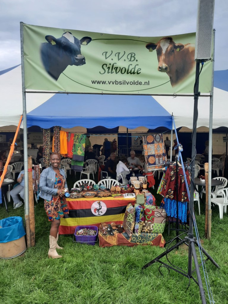 Op 24 en 25 juni 2022 stond Ddembe op de Country Fair in Aalten dankzij Vereniging Veehouderijbelangen (V.V.B.) Silvolde. De opbrengst was een succes! Links staat voorzitter Jackie.