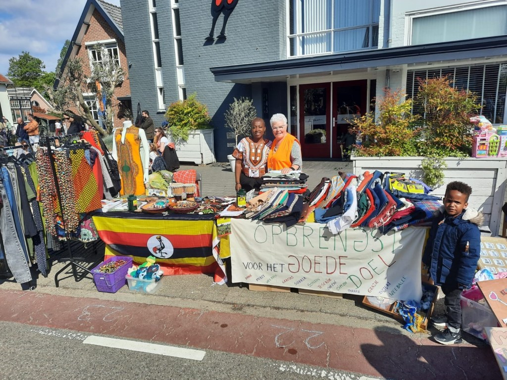 Op 27 april 2022 stond Stichting Ddembe met Koningsdag op de markt in Westervoort. Voorzitter Jackie staat naast Thea Jansen-Smeenk, een goede vriendin van de stichting!