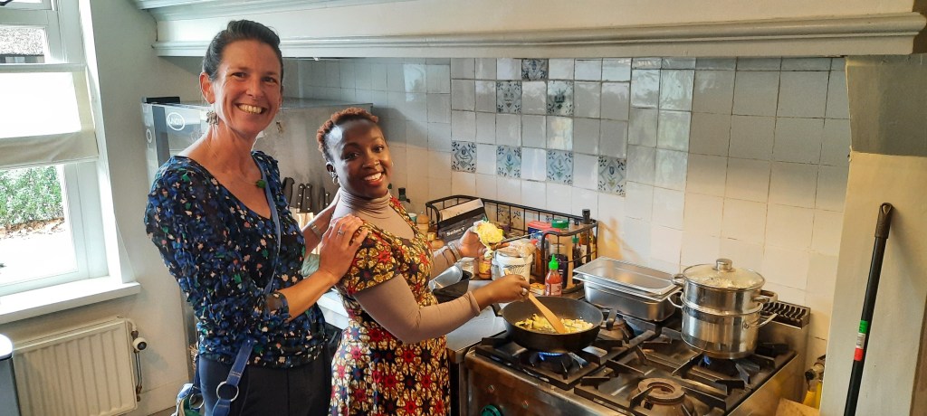 Op 15 oktober 2022 verzorgde Ddembe de catering van een bijeenkomst van INclusion Worldwide, een bevriende stichting die ook actief is in Oeganda. De opbrengst van het etentje ging naar Ddembe. Zo versterken we elkaar! Rechts zie je voorzitter Jackie met Moniek Rouweler, communicatiemedewerker bij INclusion.