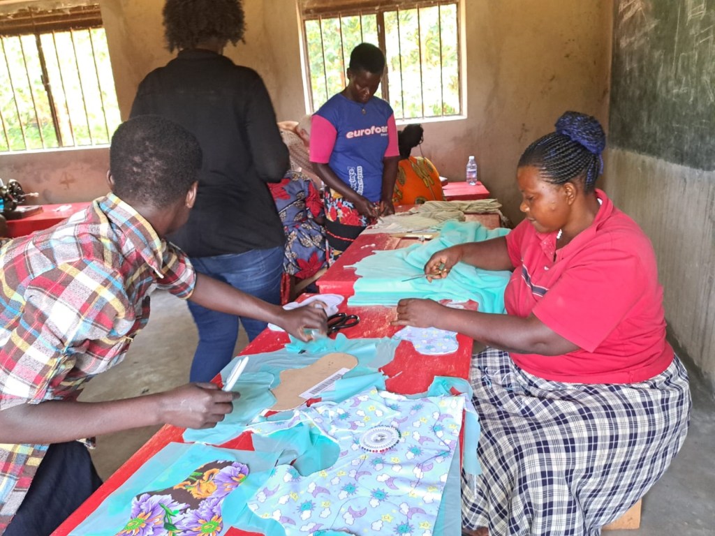 Nu bedienen de Ddembe-vrouwen de naaimachines nog buiten. We werken er keihard aan dat ze in de toekomst dit werk in het afgebouwde activiteitencentrum kunnen doen. Helpt u ook mee?