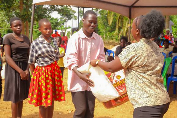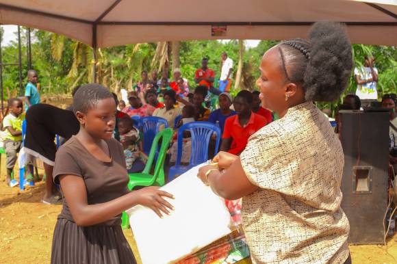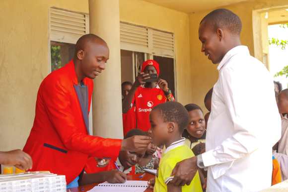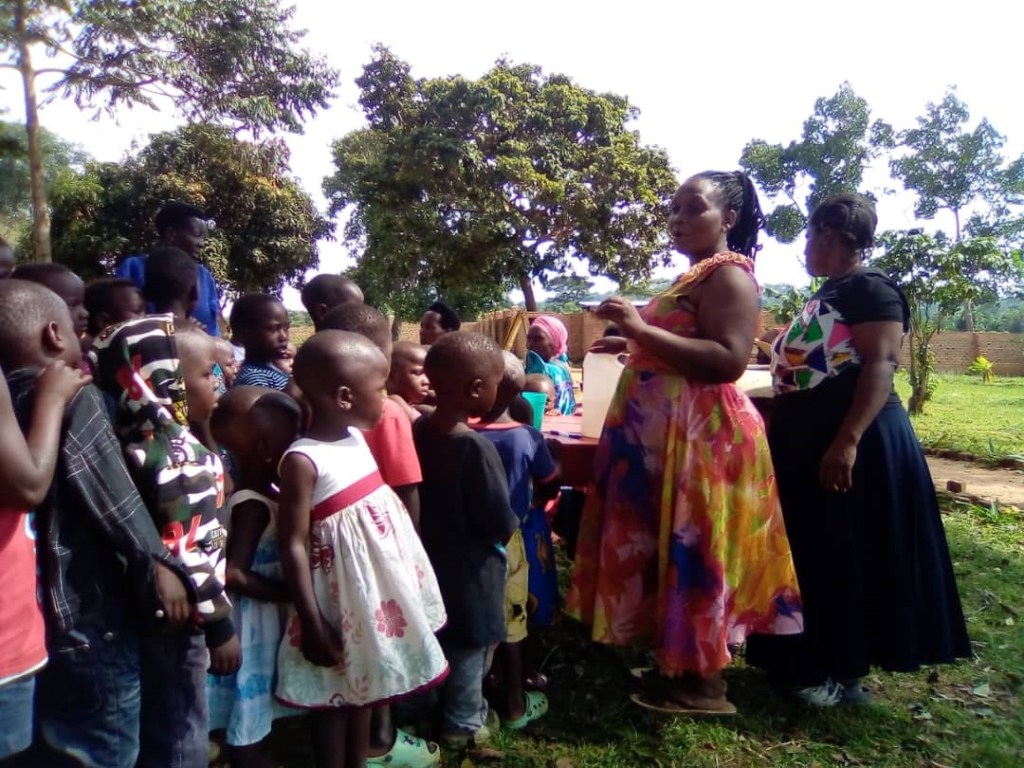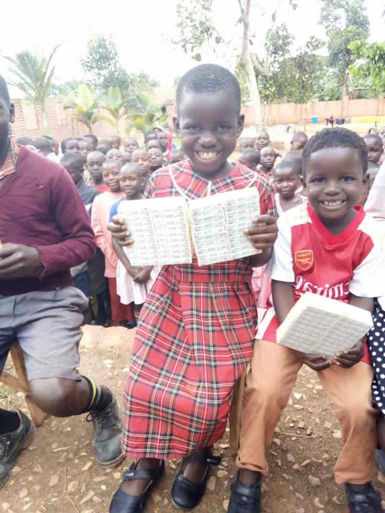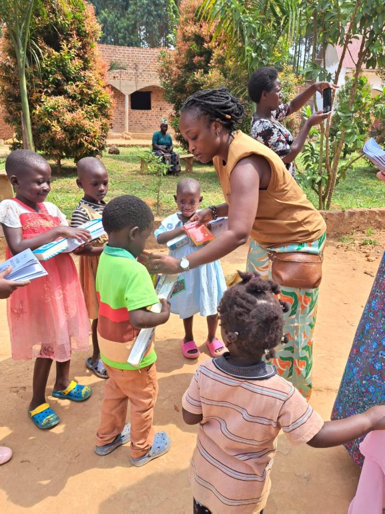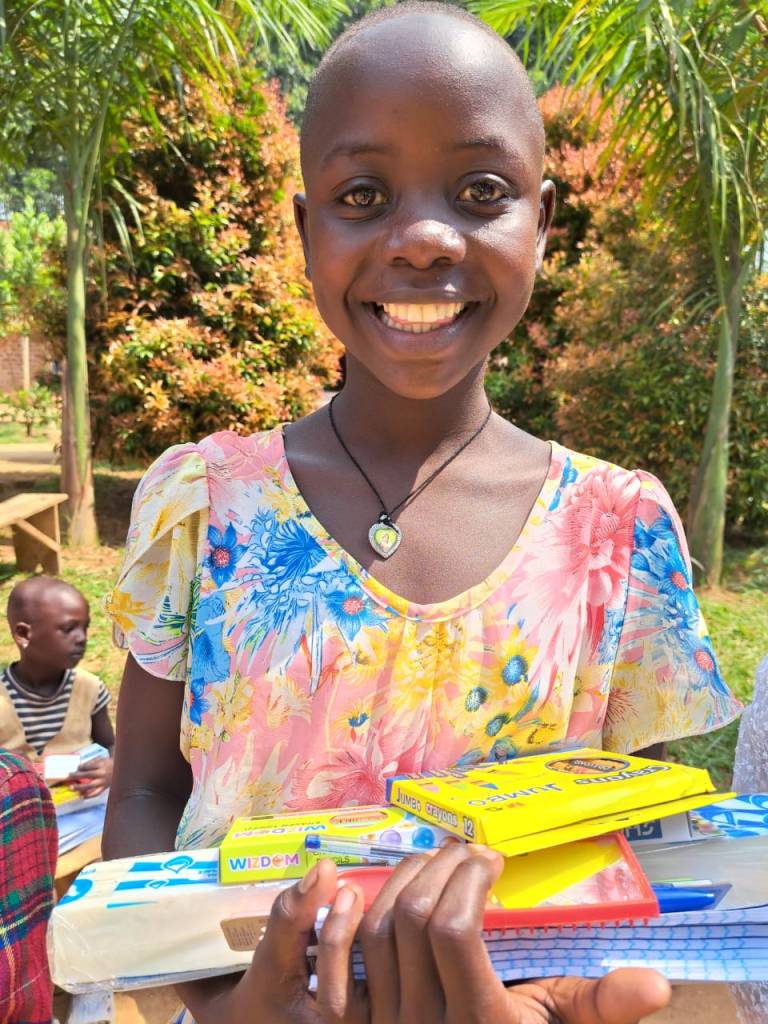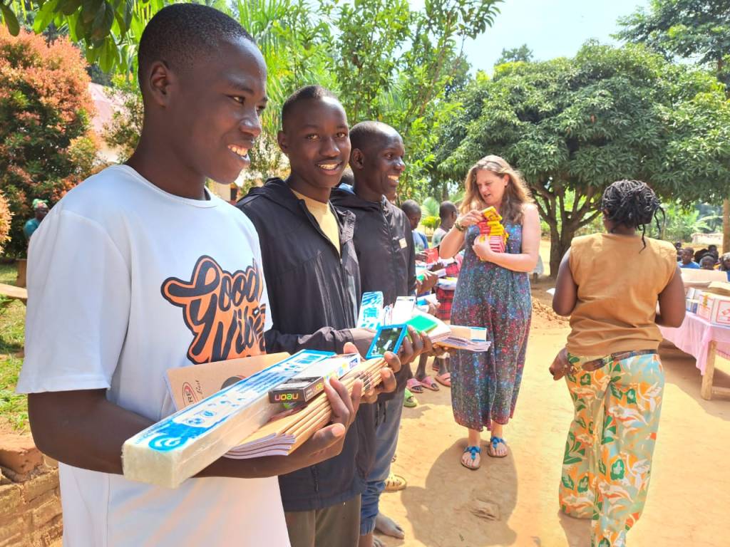 Ook deelden voorzitter Jackie Namakula en vrijwilliger Annelieke Loman schoolbenodigdheden en een ontwormingskuur uit aan de leerlingen!