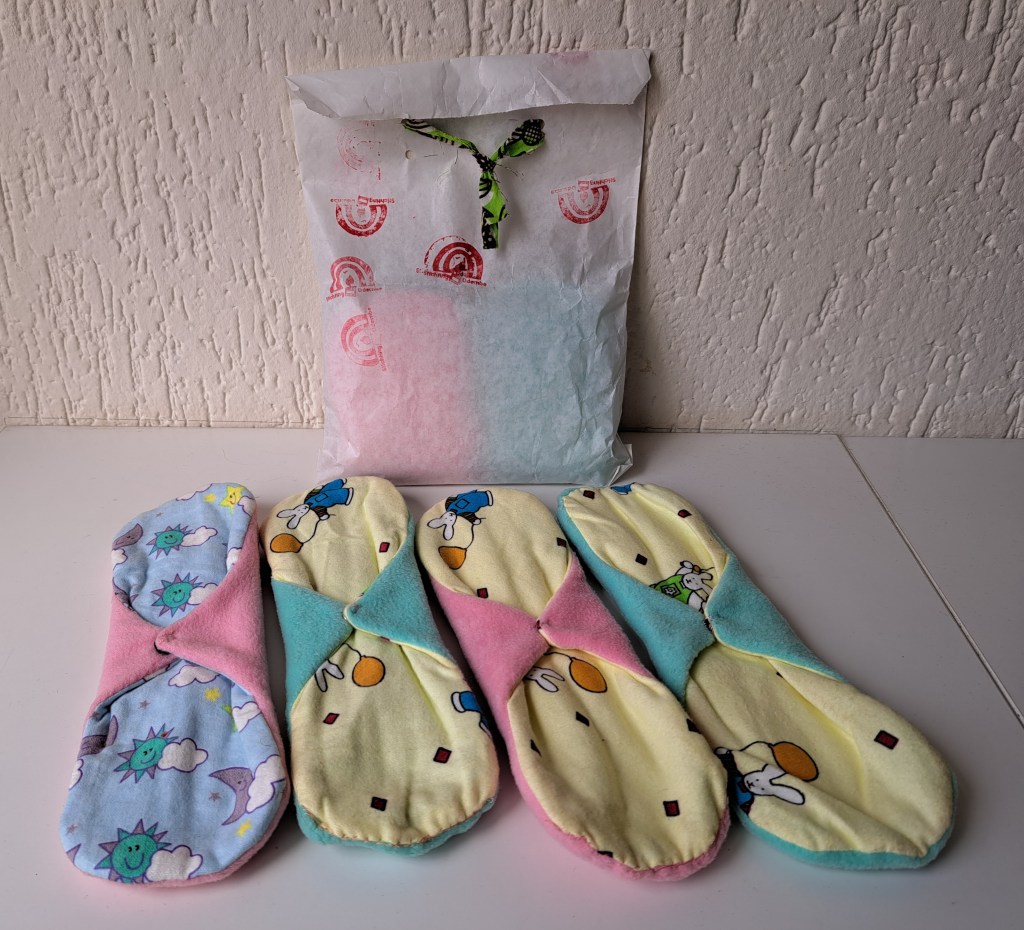De vrouwengroep van Ddembe maakt herbruikbaar maandverband en verkoopt dit voor een betaalbare prijs aan schoolgaande meisjes en vrouwen.