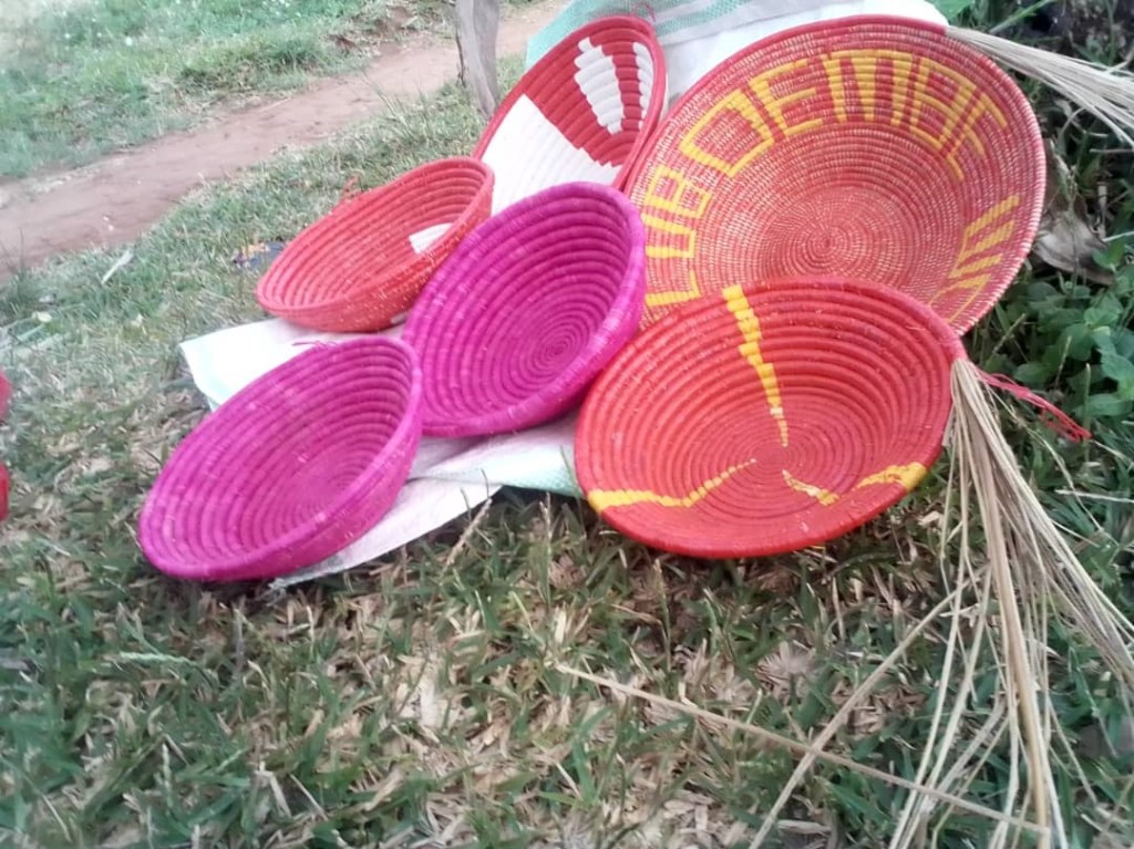 Ook de vrouwengroep op Bunjjako staat niet stil. Hier vlechten de dames prachtige manden van raffia. Met de verkoop van deze artikelen genereren zij een eigen inkomen.