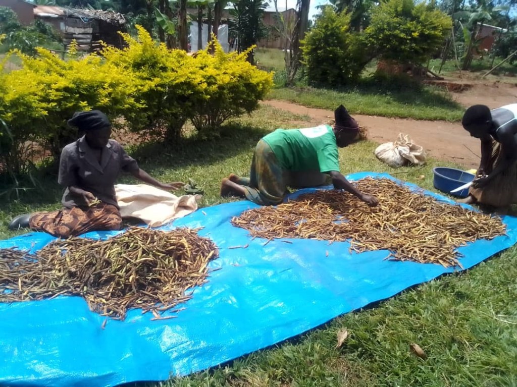 Ook in Oeganda wordt keihard gewerkt. De bonen kunnen bijna geoogst worden!