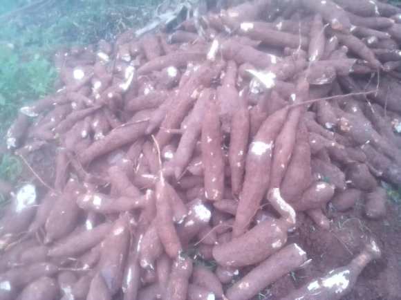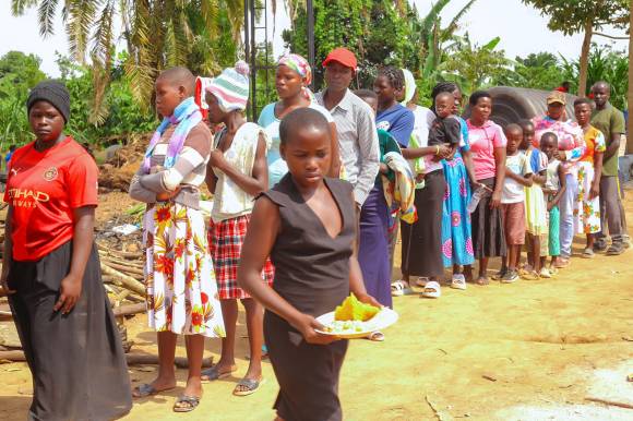 De dames hebben hard gewerkt om de cassave te oogsten (links en midden), dus deze toelage (rechts) was dubbel en dwars verdiend!