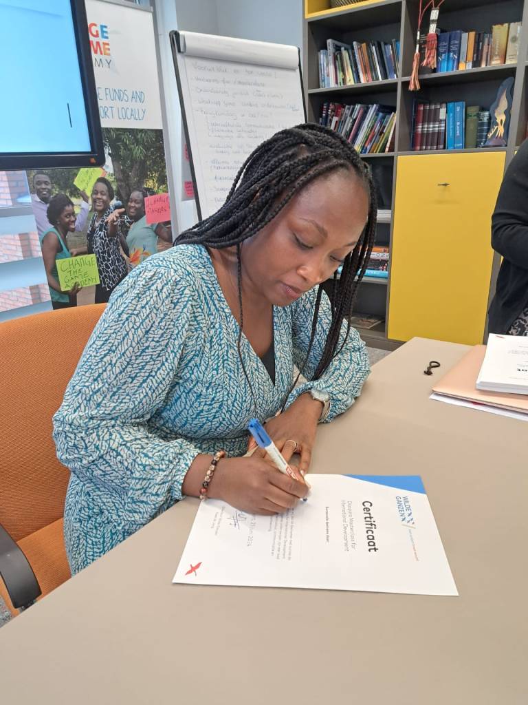 Ddembe investeert in kennis en vaardigheden. Daarom volgde voorzitter Jackie de Diaspora Masterclass for International Development bij Wilde Ganzen in Amersfoort. Op 21 juni 2024 voltooide zij dit traject met succes!